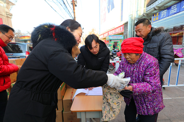 12月21日上午,2017年冬至的前一天,“平原牌”饺子在商场南门广场一字排开,拉开了“平原温情”的序幕。第一批发放的是商场的离退休老职工们,待他们领完之后,第二批发放各楼层的一线员工,第三批发放机关后勤工作人员。瑟瑟寒风中,一抹抹“平原红”一次又一次的沸腾起来,红色的羽绒服工装,一袋袋包满真情和关爱的饺子,一个个传递接力的平原家人,一张张写满幸福和感恩的笑脸,构成了一幅流动的温情画面。