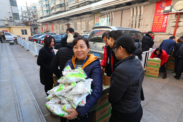 当商场工会主席王雪军和人力资源部的工作人员们将一袋袋、一箱箱的饺子送到商场员工们的手中时,商场离退休老职工们,一手提着一袋饺子,满脸笑颜,深情的说:“当年我为商场发展出力流汗,现在商场对我真情回馈,这两斤饺子不只是饺子,是沉甸甸的情啊、是真切切的心,更是平原人的骄傲和自豪!”年轻的商场员工们,排起接递长龙,一箱箱饺子如同幸福的纽带,在相互的传递中将彼此的心凝聚的更紧。大家边干边说:“这传递着使不完的劲儿啊,因为这股劲儿里蕴藏了太多幸福和感恩的能量!把这两袋饺子带回家,应了节气、解了烦忧、暖了身心!”